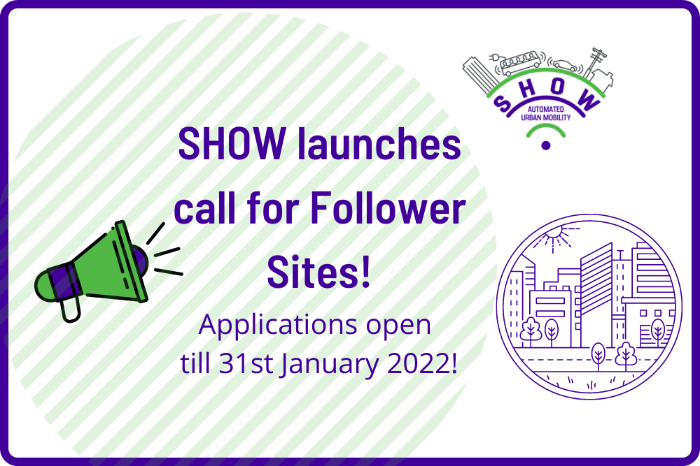 The SHOW project is looking for stakeholders interested in becoming a Follower Site of the project. The call is open to any public or private entity based in Europe, which has the ambition to either initiate, upgrade or expand shared CCAM services in a designated urban area. Interested stakeholders may apply till 31st January 2022.