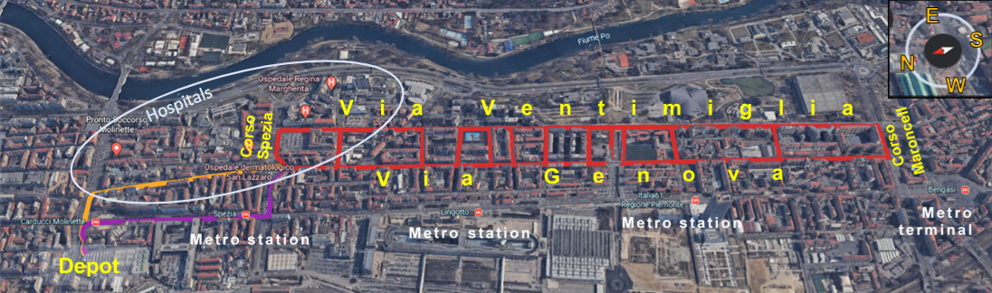 The 11 shuttle stops (7 in via Ventimiglia, 4 in via Genova) overlap with public transport stops of the bus lines present along the path.